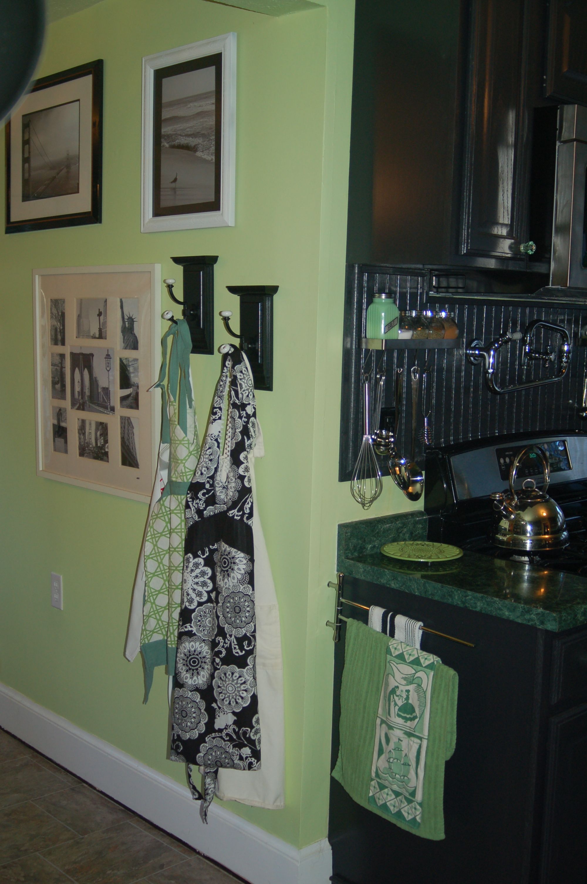 The side windows in the kitchen with glass shelves, and my green glassware collection! The light coming through in the morning really makes this look fun and sparkly and bright.