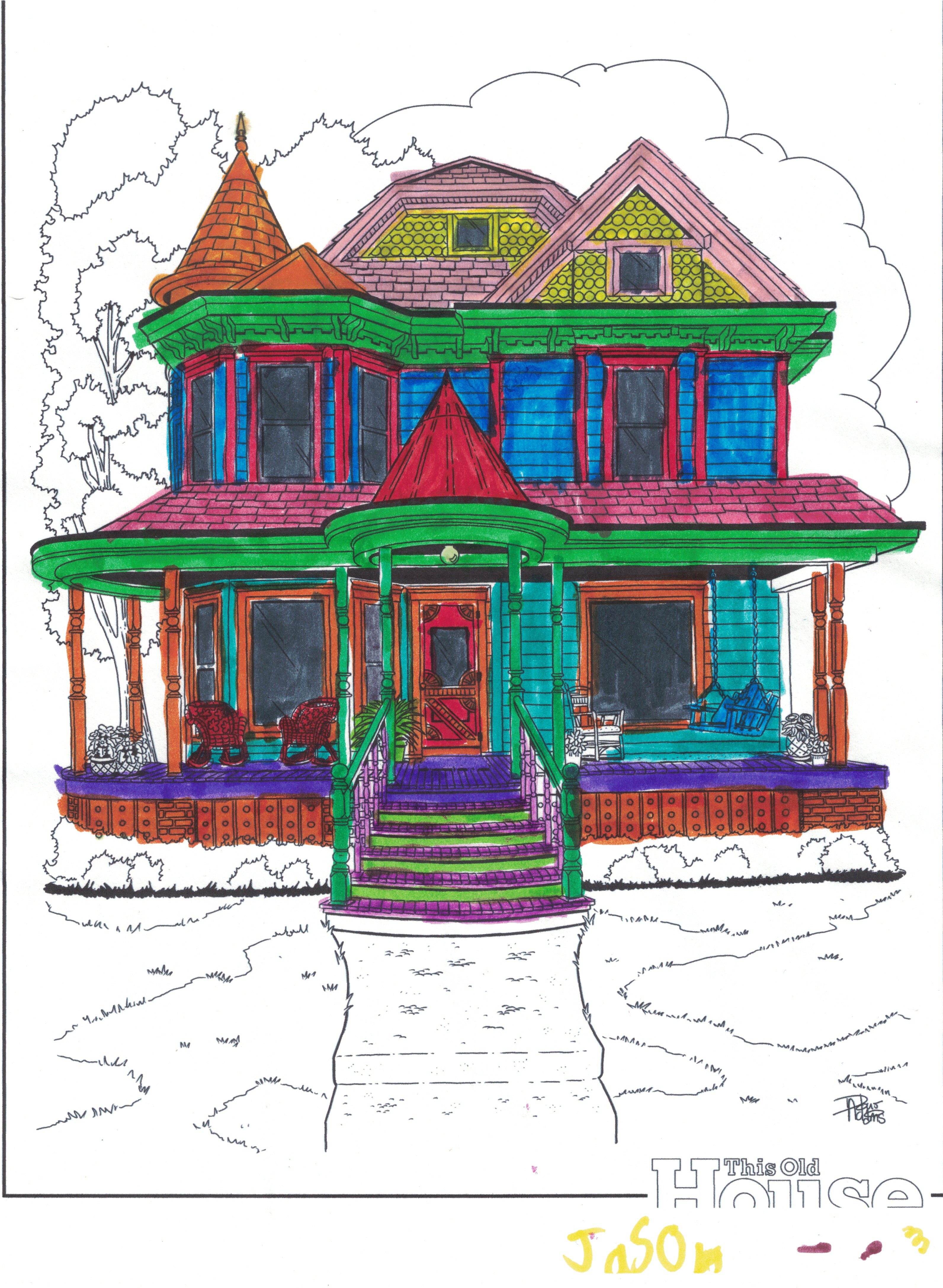 In the July issue of “This Old House” magazine, we were fortunate to have the house featured on the front cover. EQUALLY as squeal worthy? They made a coloring book page of our house.